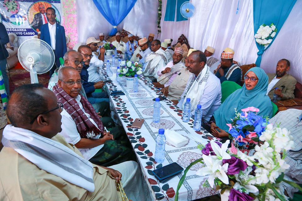 Madaxweynaha oo ka mahadceliyey munaasabadda qado sharafta ah, ayaa hoggaanka dhaqanka Iyo Masuuliyiinta kulanka ka qeybgalay kula dardaarmay illaalinta midnimada, nabadgelyada iyo horumarka Gobolka Mudug iyo guud ahaan Puntland.