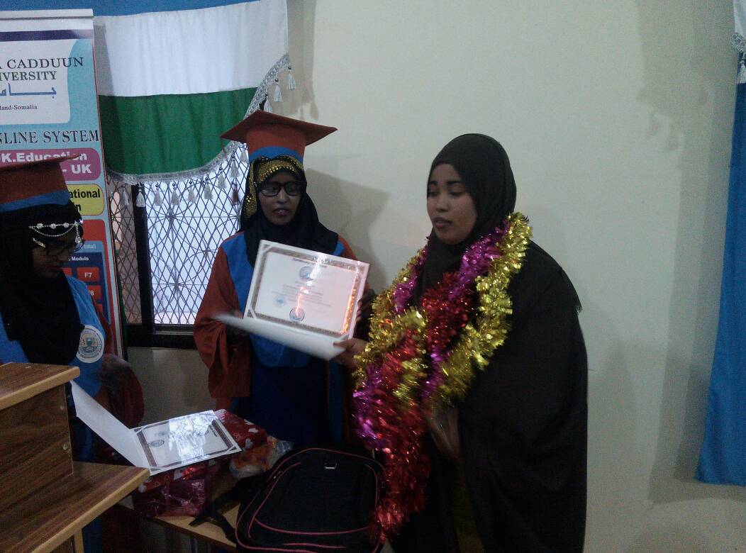 Maamulka Jaamacada Cadduun University ee magaalada Galkacyo ayaa shahaadoyin gudoonsiiyay arday ka qalinjabisay jaamacadaasi,kuwaasoo bartay umulisanimada iyo Computer Sceince.