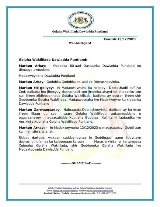 Gudoonka baarlamaanka Puntland oo sharci daro ku tilmaamay Magacaabida xubnaha Guddiga Xallinta Khilaafaadka & Ansixinta Xubnaha Golaha Wakiillada DPL.