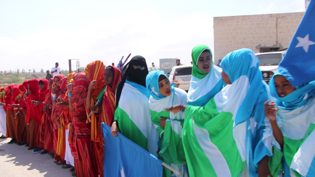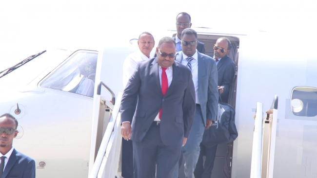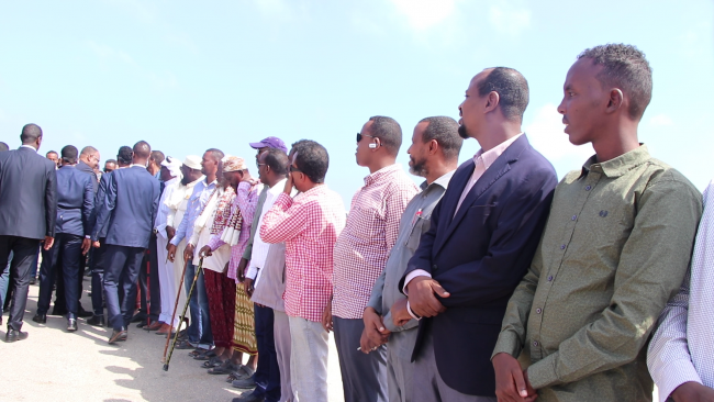 Garoonka diyaaradaha ee magaalada Bosaaso waxaa ku soo dhaweeyay dadweyne fara badan oo sitay calanka Puntland iyo kan Soomaaliya  .