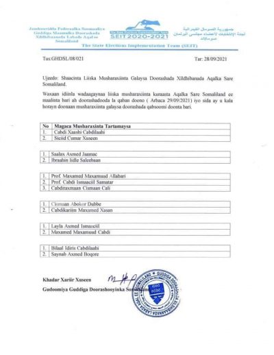 Waxaa la rajeynayaa in maalinimada Khamiista ee 30ka bishan la soo gabagabeyn doono doorashada senatarada aqalka sare ee Soomaliland oo gaaraya 11 kursi.