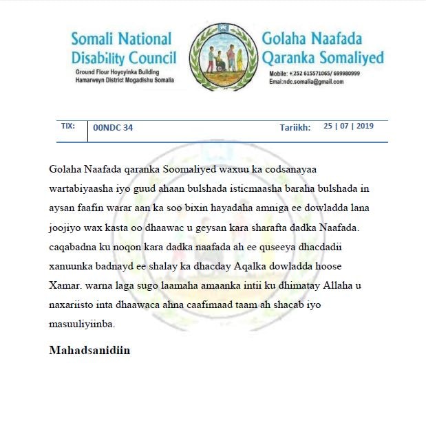 Golaha Naafada Soomaaliyeed ayaa Codsi udiray Warbaahinta iyo Dadka Isticmaala Baraha Bulshada oo ku aadan ruux ka mid ahaa Golaha Naadaafadda oo ku dhintay Qaraxii dowladda Hoose, islamarkaana qaar ka mid ah bulshadda Soomaaliyeed ay sheegeen in uu ahaa ruuxii isku qarxiyay xarunta dowladda Hoose.