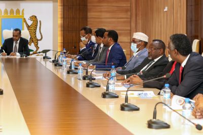 Shirka oo uu guddoomiyey R’iisil Wasaaraha XFS Mudane Maxamed Xuseen Rooble ayaa waxaa kale oo laga hadlay arimaha abaaraha iyo cudurka COVID-19. oyinka.