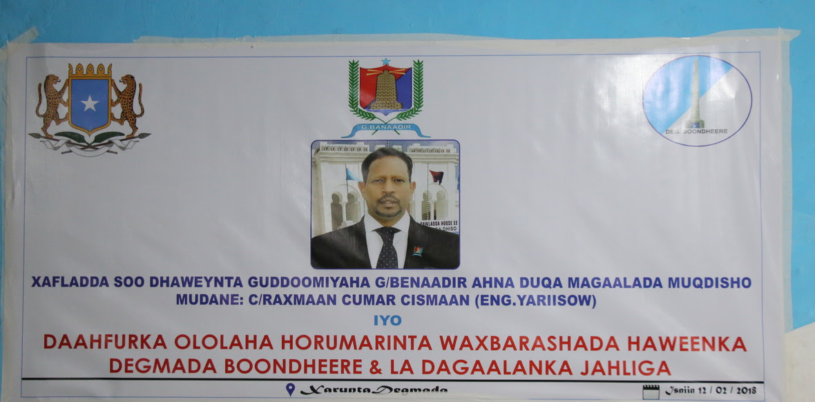 Guddoomiyaha Gobolka Benaadir ahna duqa magaalada Muqdisho Mudane Cabdiraxmaan Cumar Cusmaan (Eng. Yarisow) ayaa caawa degmada Boondheere ka furay barnaamij ku saabsan Waxbarashada dadka waaweyn oo lagula dagaalamayo jahliga.