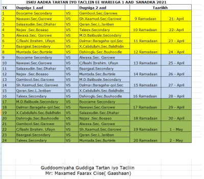 Isku aadka Wareega Koowaad ee Barnaamijka Tartan iyo Tacliin & Iskuulada Tartamaya sanadka.
