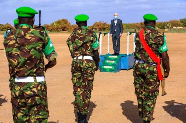 James Swan ayaa soo dhoweyn hab maamuuskeeda sareysay loogu sameeyay Garoonk diyaaradaha Kismaayo, waxaana uu sallaan ka qaatay Cutubyo ka tirsan Ciidanka AMISOM ee ka socda Kenya.