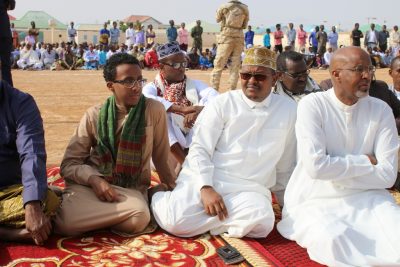 Guddoomiyaha baarlamaanka Puntland, saraakiisha ciidamad kalle duwan, xildhibaano iyo golaha wasiirada iyo shacabka magaalada Garoowe ayaa ka qaybgalay munaasabaddii Ciidda oo kadhacday garoonka kubadda cagta ee Mire Awaare Studium ee Garoowe.
