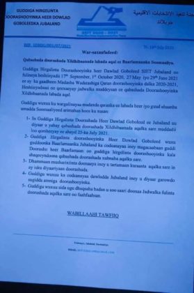 Qoraalka ka soo baxay guddiga doorashada heer dowlad goboleed ee Jubbaland ayaa lagu cadeeyay iney diyaar u yihiin qabashada doorashada Aqalka Sare.