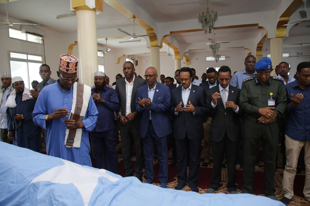 Madaxwaynaha dowladda faderaalka Soomaaliya Maxamed Cabdulaahi Farmaajo, golaha wasiirada, xildhibaan iyo odayaasha dhaqanka ayaa salaadda ku dukuday marxuumka.