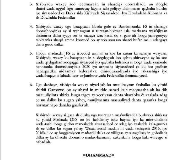 Xisbiyadan, ayaa si fog uga hadlay xaalada siyaasadeed ee dalku uu xilligan ku jiro, waxayna si gaar ah ugu kuur-galeen doorashooyinka 2020-ka ka dhici doona Somalia.