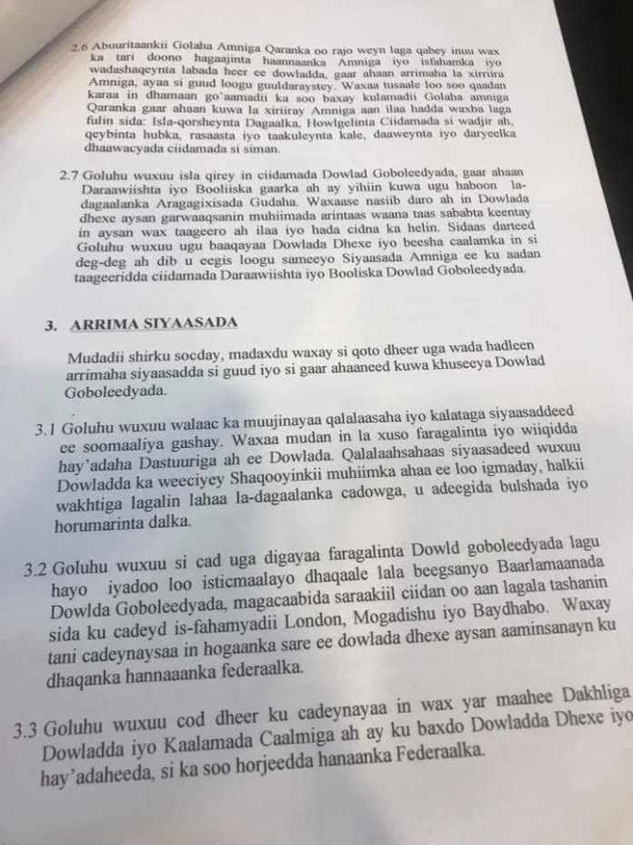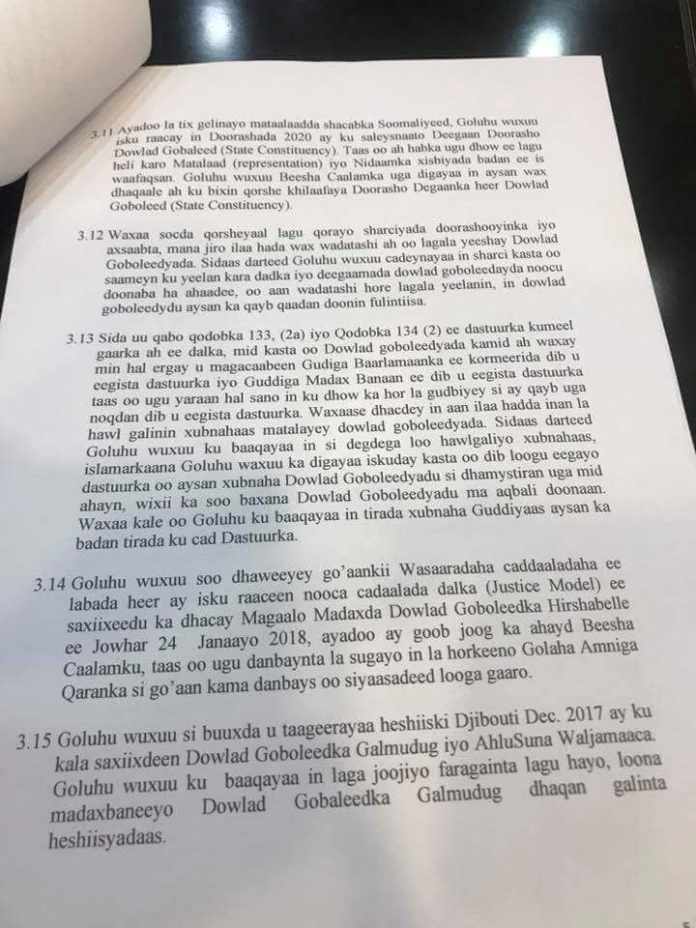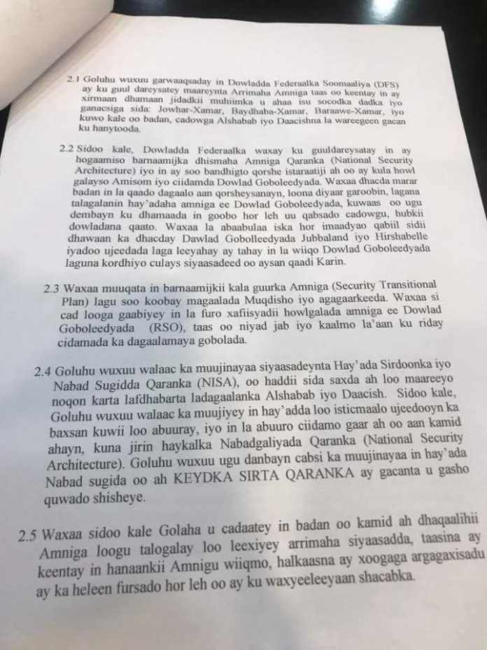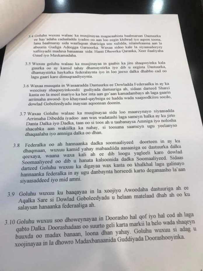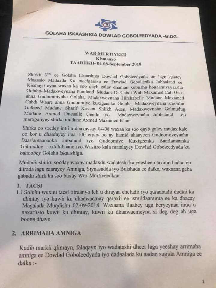 Warsaxaafadeed ay kasoo saareen shirkoodii uga socday magaalada Kismaayo ayaa madaxwaynayaasha Puntland, Jubaland, Galmudug, Koonfur Galbeed iyo Hir Shabelle ku eedeeyeen inay dowladdu ku tumatay dastuurka oo ay dhaqaaalihii ammaanka wax looga qaban lahaa ku burburinayso maamul goboleedyada.