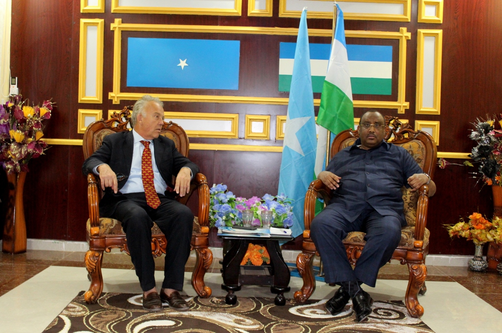Madaxeynaha Dawladda oo kulanka kadib warbaahinta la hadlay ayaa sheegay inuu soo dhaweynayo booqashada uu Danjire Michael Keating ku yimi Caasimada Dawladda Puntlan ee Magaalada Garoowe,