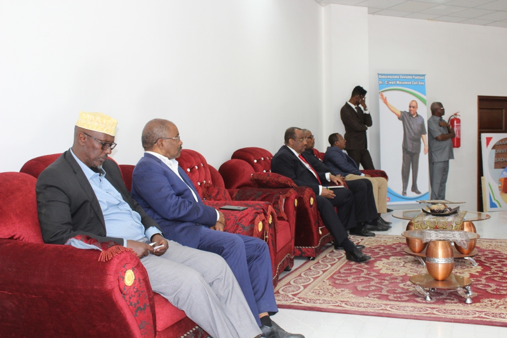 Munaasibadda oo ka qabsoontay Jaamacadda Maakhir ayaa waxa Madaxweynaha ku wehelinayey masuuliyiin ka tirsan goleyaasha dowladda Puntland, maamulka gobolka Sanaag, kan degmada Badhan, saraakiil ka tirsan Madaxtooyada dowladda Puntland, aqoonyahano, cuqaal, isimo iyo masuuliyiin kale.