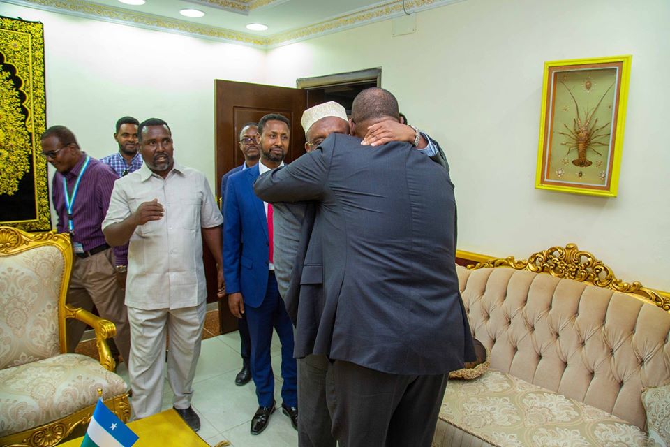 Madaxweynaha Dowladda Puntland Mudane Siciid Cabdullaahi Deni ayaa maanta Madaxtooyadda ku qaabilay Madaxweynihii hore ee Puntland Mudane Cabdiweli Maxamed Cali Gaas oo maanta dalka dib ugu soo laabtay.