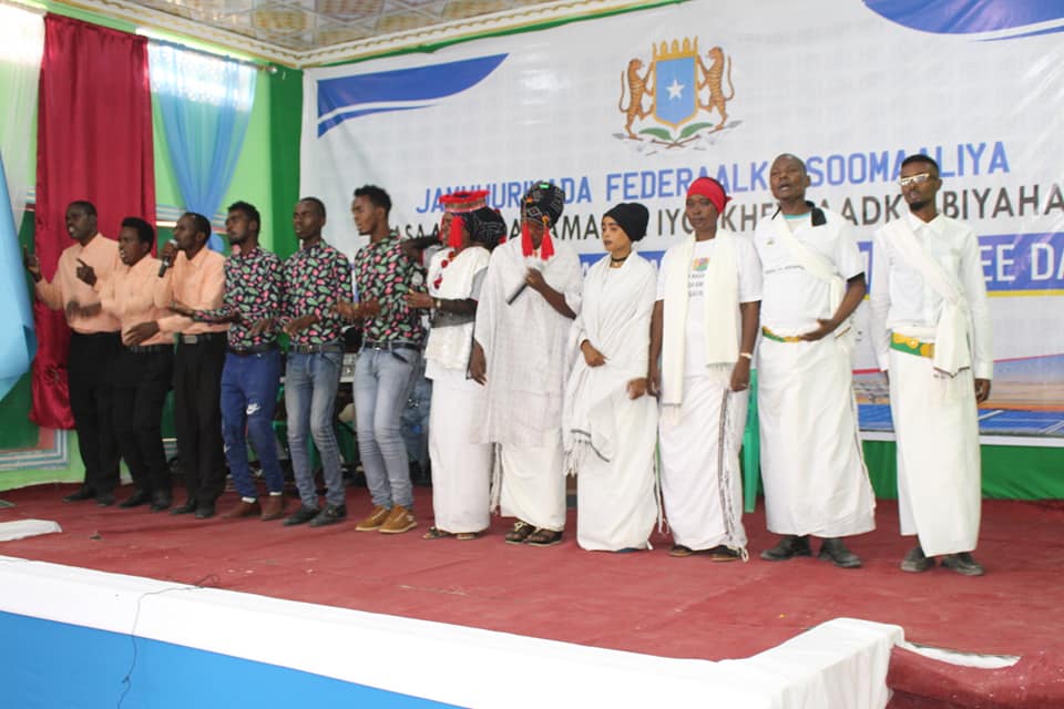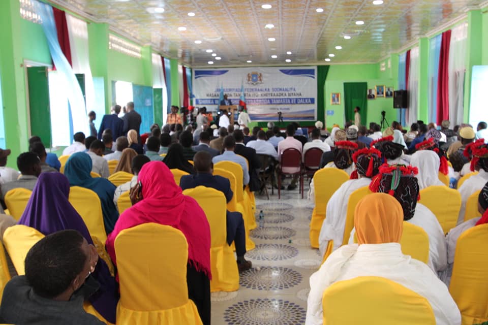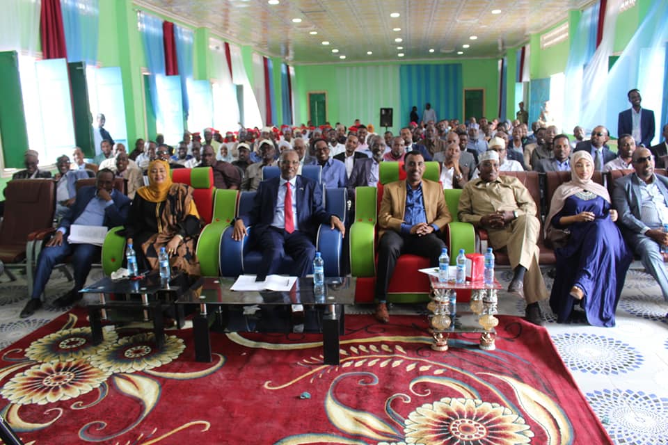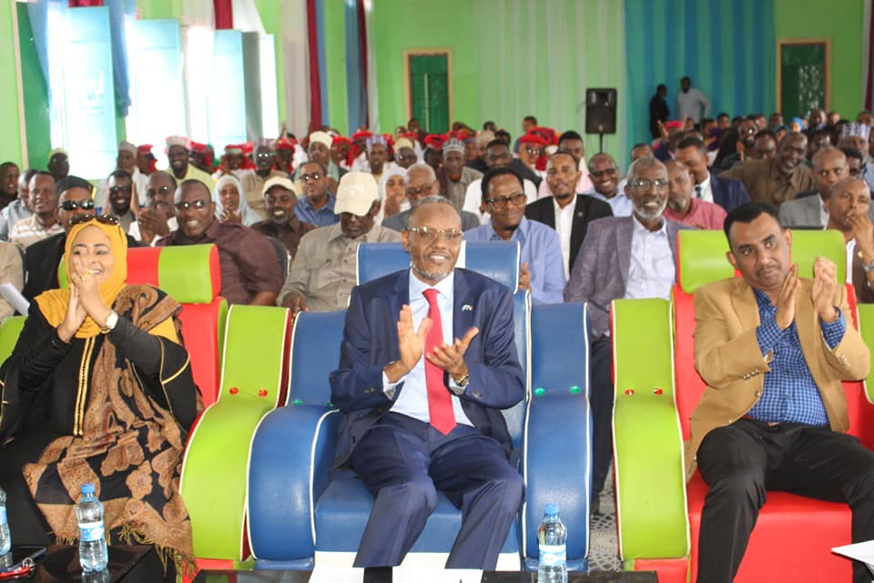 Madaxweynaha Dowlad Goboleedka Koonfur Galbeed Somaliya Gudoomiyaha Golaha Shacabka Barlamanka KG,Wasiiro Xildhibaano, Siyaasiyiin iyo ururada Bulshada Qeybaheeda kala Duwan ayaa ka Qeybgalay Munaasabad kooban oo lagu Daahfurayey Shirka oo ka dhacday Xarunta Ruun jinaad ee Magalada Baydhabo.