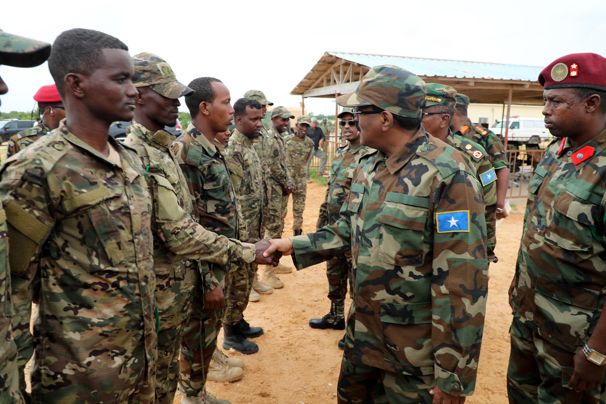 Madaxweyne Farmaajo ayaa ku dhiirri geliyey ciidankan oo dhawaan ku wajahan furimaha dagaalka, sida ay u ajiibeen baaqiisii ku saabsanaa difaaca dalka “Waxaan idin ku ammaanayaa in aad ajiibteen codsigaygii ku saabsanaa in la helo mutadawiciin ka qeyb qaata difaaca dalka, Waxaan rajeynayaa in aad noqotaan kuwii ka xoreeyn lahaa dalkan nabaddiidka caadeeystay in ay si arxan darro ah u daadiyaan dhiigga shacabka Soomaaliyeed.”