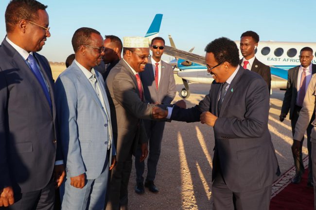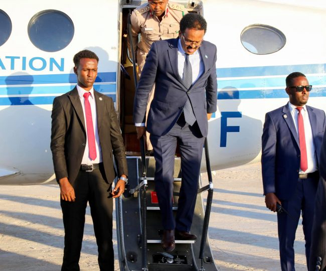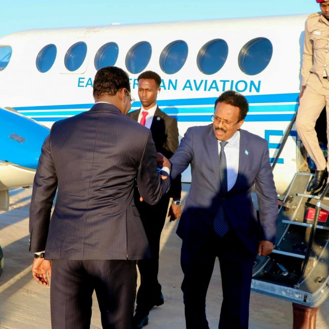 Wafdiga waxaa garoonka diyaaradaha ee magaalada Dhuusamareeb kusoo dhaweeyay madaxweynaha Galmudug Axmed Cabdi Kaariye Qoorqoor, kuxigeenkiisa iyo mas’uuliyiin kale.