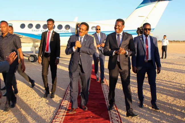 Madaxweyne Maxamed Cabdullahi Farmaajo iyo wafdi ballaaran oo uu hoggaaminayay ayaa lagu soo dhaweeyay magaalada Dhuusamareeb oo uu maalinta beri ah ka daahfuri doono.