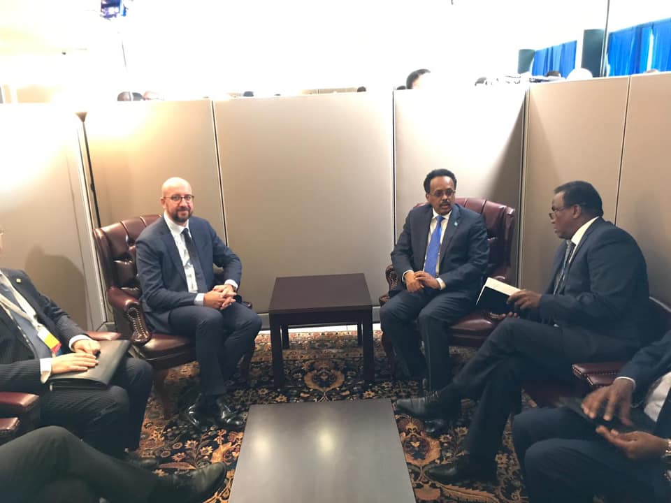 Sidoo kale Madaxweyne Farmaajo ayaa kulan la yeeshay Ra’iisul Wasaaraha Belgium Mudane Charles Michel waxaa diiradda lagu saaray xoojinta xiriirka labada dal, kaalinta Belgium ee dib u dhiska Soomaaliya iyo sidii Midowga Yurub u sii dardargelin lahaa taageerada uu ku bixiyo dowlad-dhisidda Soomaaliya.