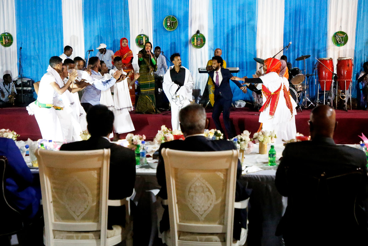 Labada Madaxweyne ayaa ku caweeyay heeso iyo suugaan kala duwan oo xambaarsan dhambaallo soo dhawayn iyo walaaltinimo oo ay goobta ka qaadeen fanaaniinta Soomaaliyeed iyo kuwa reer Jabuuti, kuwaas oo loogu talo galay soo dhawaynta Madaxweyne Ismaaciil Cumar Geelle iyo wafdiga la socda.