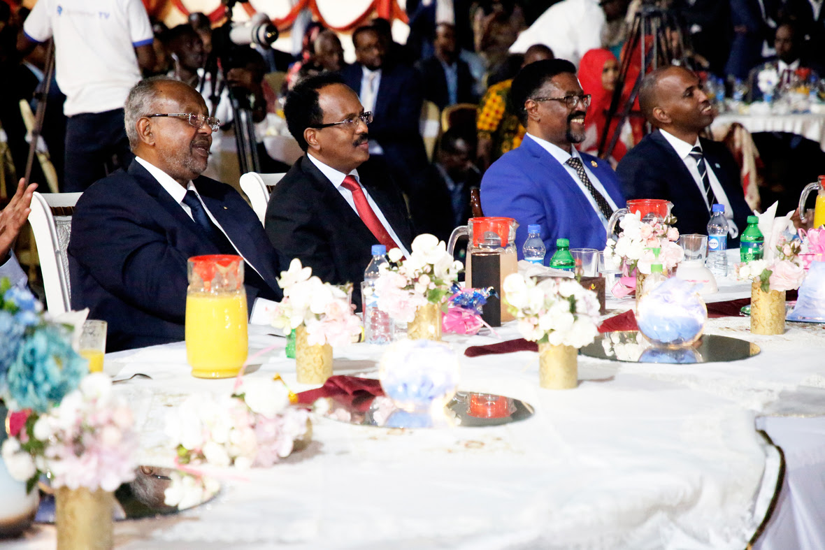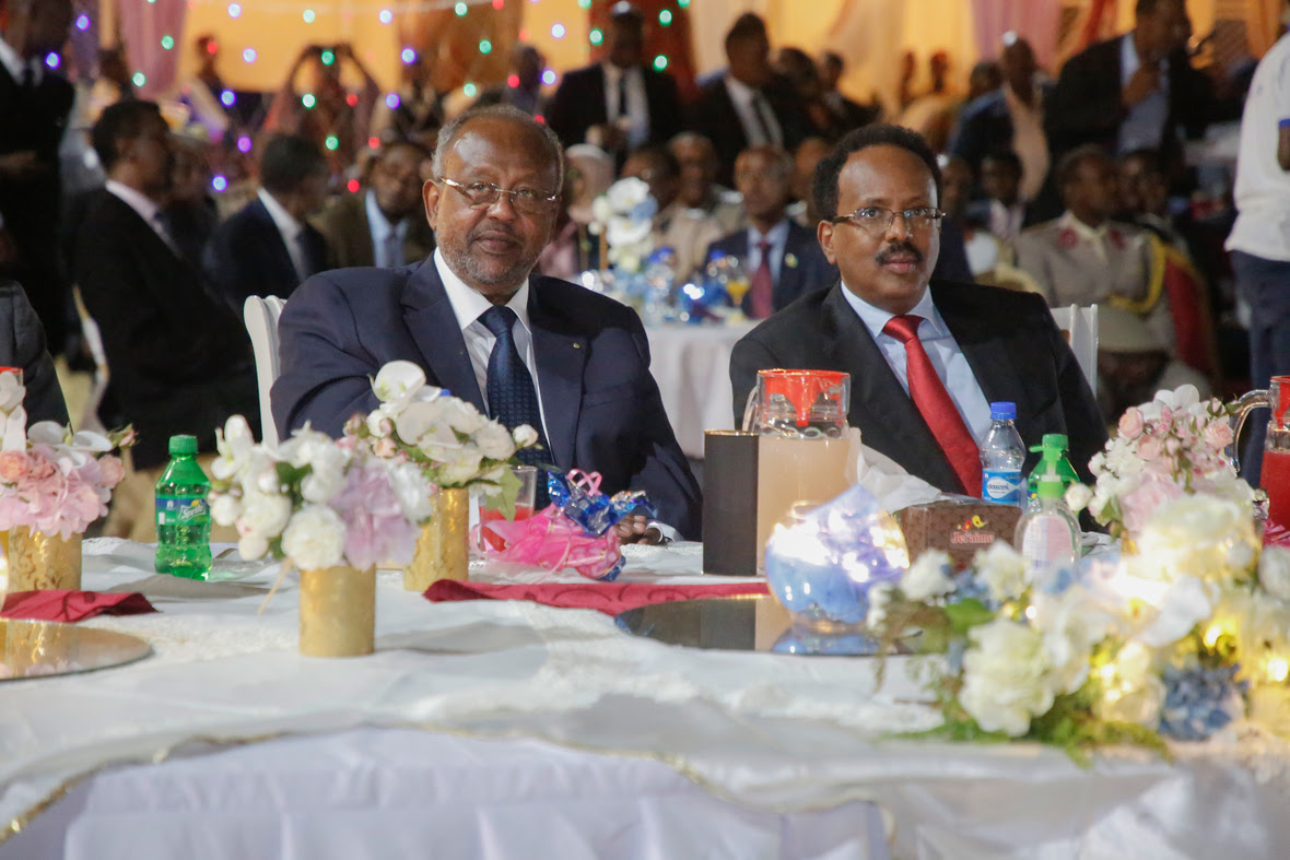 Madaxweynaha Jamhuuriyadda Federaalka Soomaaliya Mudane Maxamed Cabdullaahi Farmaajo ayaa casho sharaf lagu maamuusayo Madaxweynaha Jamhuuriyadda aan walaalaha nahay ee Jabuuti Mudane Mudane Ismaaciil Cumar Geelle iyo wafdiga uu hoggaaminayo ugu sameeyay Villa Soomaaliya xalay.