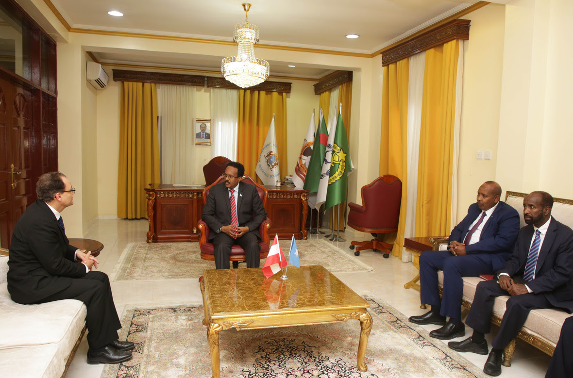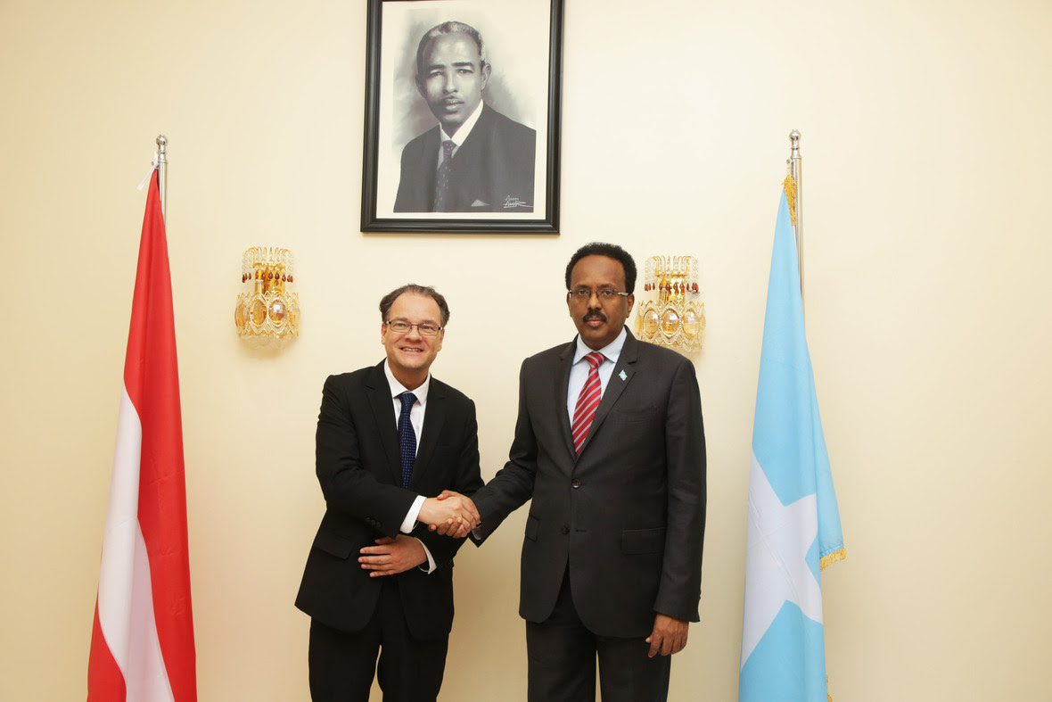 Danjiraha Jamhuuriyadda Federaalka Austria Mudane Christian Fellner oo Madaxweynaha la wadaagay farriin iyo salaan uu uga siday dhiggiisa dalkaas Mudane Alexander Van der Bellen ayaa tilmaamay dadaalka uu ku bixin doono sare u qaadidda xiriirka labada dal, isaga oo dowladda iyo shacabka Soomaaliyeed uga mahadceliyey soo dhaweynta diirran.