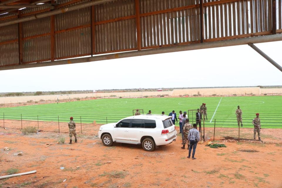 Madaxweyne Ku Xigeenka Dowladda Galmudug mudane Cali Dahir Ciid oo Maalmahan ku sugnaa magaalada Cabudwaaq ee Gobalka Galgaduud ayaa kormeer ku tagay garoonka ciyaaraha dagmada Cabudwaaq oo dhismihiisu heer gabo gabo ah marayo.