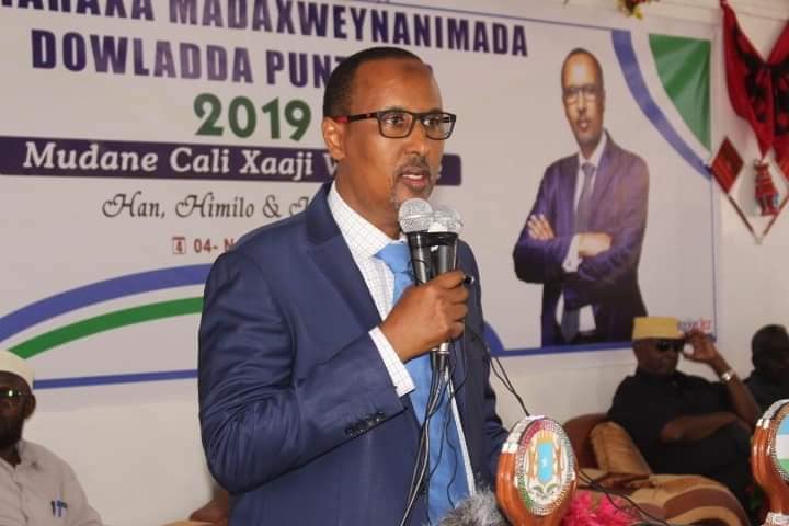 Wuxuu sheegay in Puntland aysan haysan Hogaan addag haysan,isla markaana shalay Puntland ay lahayd Ciidan diyaarsan,shacab diyaarsan,balse Puntland la dhex galay oo lakala fogeyeey shacabkii,wuxuuna shegay in Puntand u bahaantahay hogaamiye han leh oo jeebkiisa ka weyn.