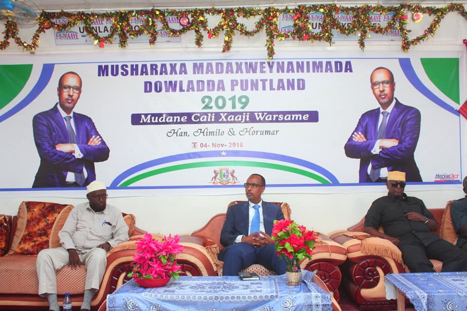 Musharax Madaxweyne Puntland 2019 Mudane Cali Xaaji Warsame ayaa maanta Magaaladda Gaalkacyo ku qabtay Munaasabad balaaran oo uu kusoo bandhigayeey waxqabadkiisa hadii uu ku guulaysto kursiga Madaxtimadda Puntland 2019.