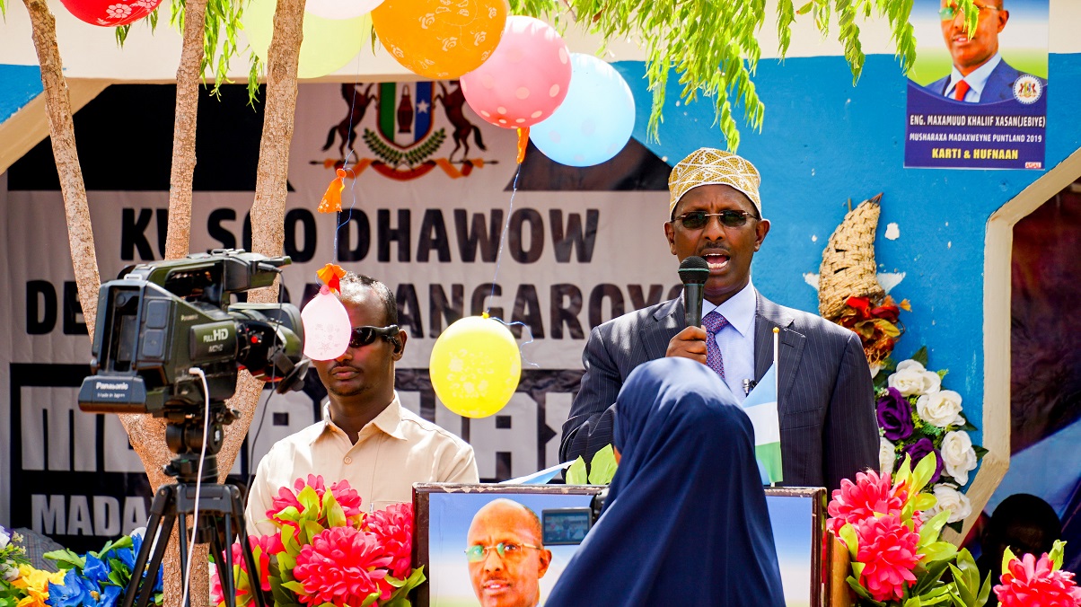 Musharraxa xilka Madaxwaynaha Puntland ee sannadka 2019, Injineer Maxamuud Khaliif Xasan Jebiye iyo wafdi ballaaran oo uu horkacayo ayaa si mug weyn maanta loogu soo dhoweeyey degmada Dangorayo ee gobolka Nugaal.