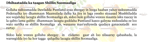 Puntland oo Gubaysa Lacagta Laga Keeno Koonfurta Soomaaliya