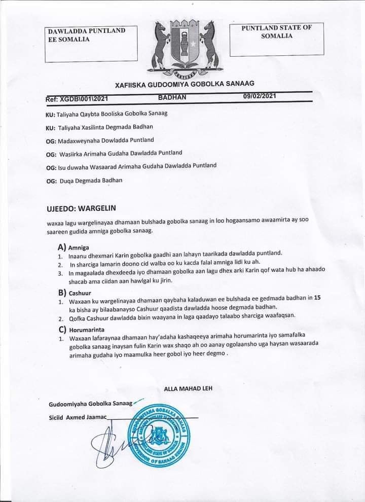 Dowladda Puntland ayaa gobolka Sanaag ka mamnuucday in ay ku safraan baabuurta aan wadan taarikada Puntland.