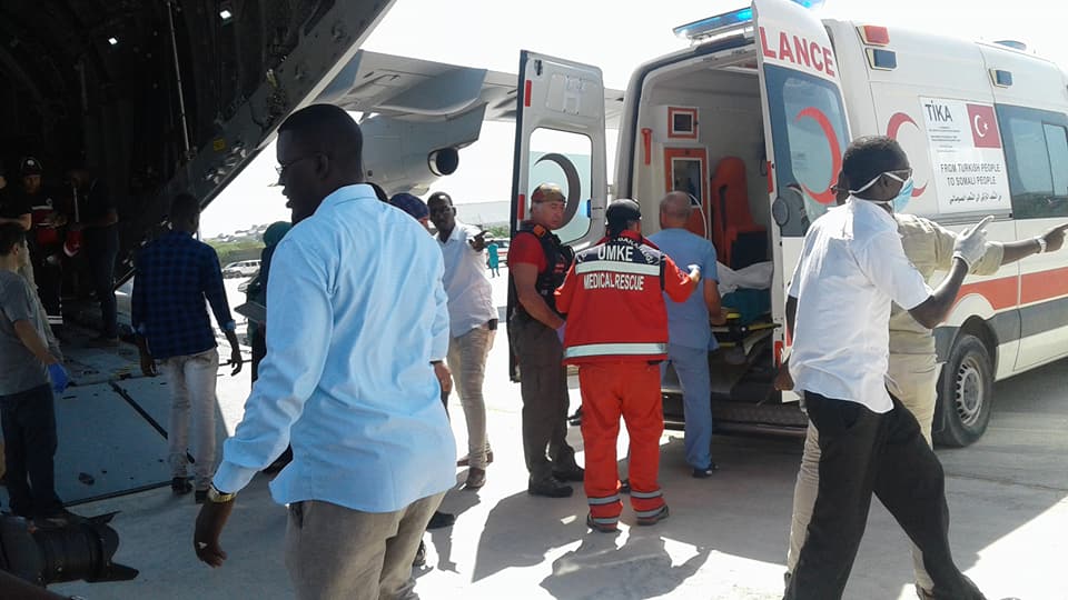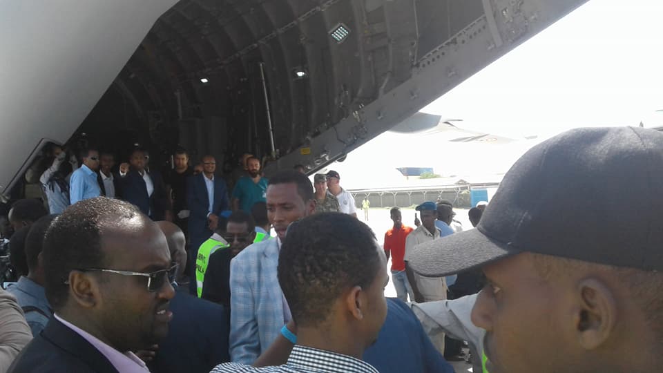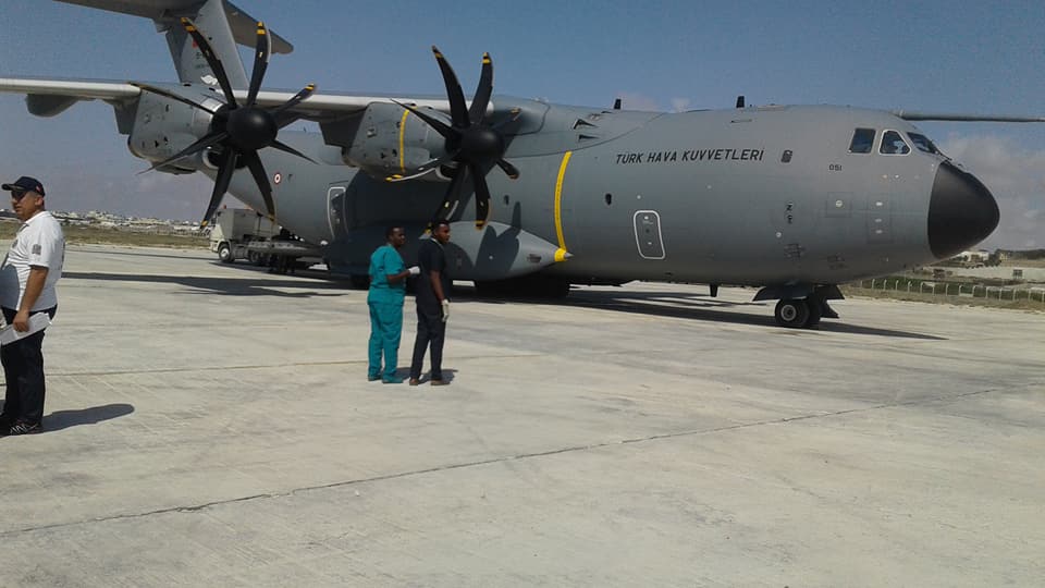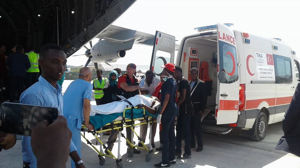 Diyaaradaan ayaa waxa ay ka timid dalka Turkiga iyada oo ay la soceen Dhaqatiir u dhalatay dalkaasi, waxaana Garoonka ku sugnaa oo sagootiyay dhaawacyada masuuliyiin uu horkacayo Ra’iisul Wasaare xasan Cali kheyre Wasiiradda Arrimaha Dibad aiyo Warfaafinta.