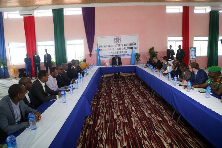 Ra’iisul Wasaaraha oo mas’uuliyiinta kulanka uu la qaatay uga warbixiyay heerarka kala duwan ee ay soo mareen dadaallada lagu dhisayo Galmudug, ayaa ka codsaday in ay laba jibbaaraan taageeradooda iyo garab istaagga Soomaaliya si guul wax ku ool ah looga gaaro dhismaha hey’adaha dowladeed ee Galmudug.