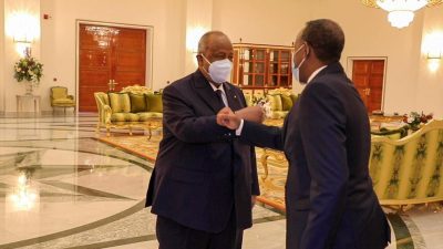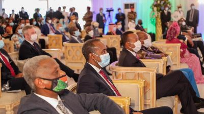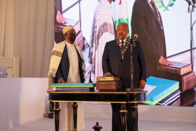 Jabuuti, May 15, 2021: Ra’iisul Wasaaraha Xukuumadda Federaalka Soomaaliya Mudane Maxamed Xuseen Rooble ayaa ka qeyb galay xafladda caleemo-saarka Madaxweynaha dalka Jabuuti Mudane Ismaaciil Cumar Geelle oo dib loogu doortay doorashooyinkii ka dhacay dalkaas.