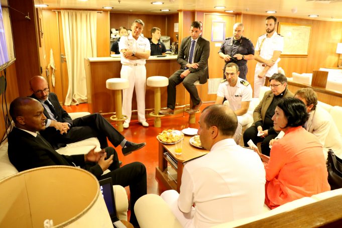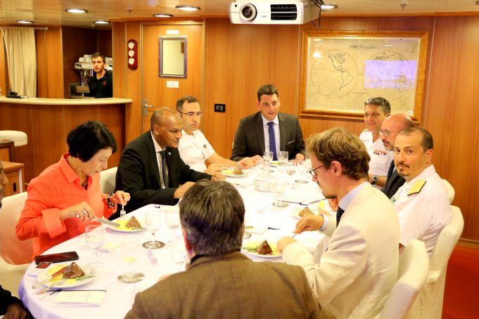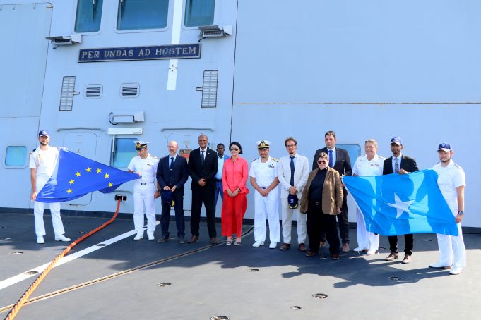 ”Wefti ka socda midowga Yurub oo uu weheliyo Taliyaha Guud ee hawlgalka ATLANTA ee la dagaalanka Budhcad-baddeedka; ayaanu shir kuwada yeelanay Markab taagan Biyaha Badweynta Soomaaliya. Markabkaasi oo kamid ah Maraakiibta Budhcadda ka ilaaliya biyaha Caalamiga. Weftigaasi waxaanu kawada hadalay arrimo muhiim ah oo ay kamid yihiin xoojinta xiriirka wada shaqayneed iyo iskaashi ee ka dhexeeya Soomaaliya iyo midowga Yurub iyo siddii hawlgalada Burcad-baddeedku si wadajir ah looga gaari lahaa hadafka laga leeyahay oo ah siddii maraakiibta dunidu ugu kala gooshi lahayd warwar la’aan iyo nabad-qab” ayuu yidhi Ra’iisalwasaare ku xigeenka Dalka Mudane Mahdi Mohamed Gulleid.