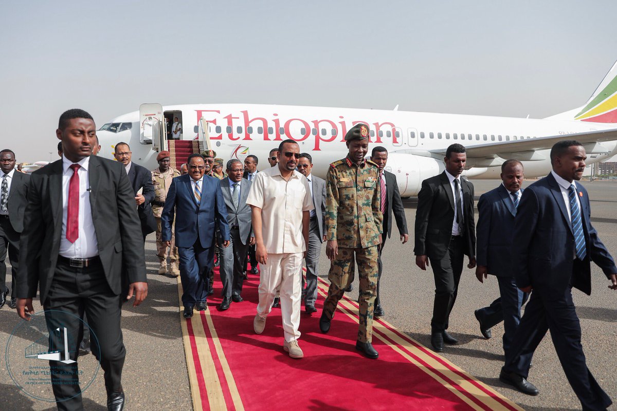 Abiy ayaa kasoo degay garoonka diyaaradaha caalamiga ah ee Khartoum wuxuuna kulamo la leeyahay Jeneraalada xukunka haya.