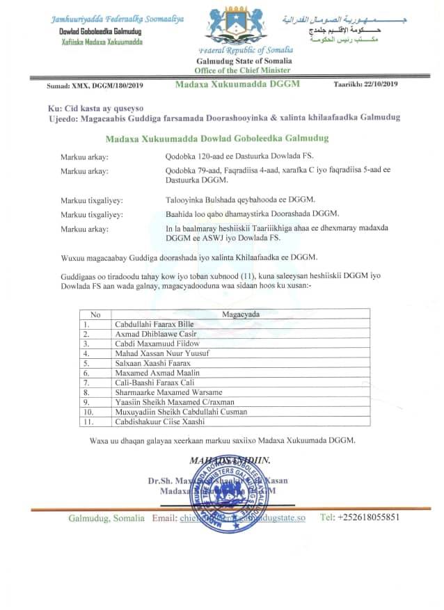 Madaxa Xukuumadda Galmudug Sheekh Maxamed Shaakir Cali Xasan ayaa magacaabay Guddiga Farsamada doorashooyinka iyo xalinta khilaafaadka Galmudug, kaasoo ka kooban 11 xubnood.