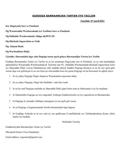 Waa maxay Shuruudaha laga rabo Iskuulada ka qaybgelaya TARTAN & TACLIIN? | Akhri Warqada guddiga oo la wadaag cid walba oo danaynaysa|