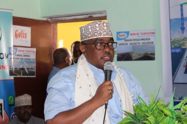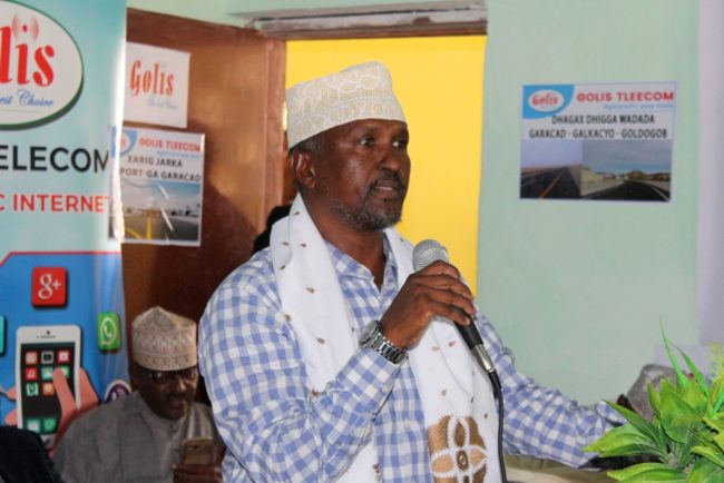 “aad iyo aad baan idiin salaamayaa iyada oo ay idiinku horeeyaan gudoonka Baarlamaanka iyo isimada, waxaan leeyahay marka hore Soomaaliya hanoolaato, Puntland hanoolaato, isku tashigu hawaaro, runtii aad iyo aad baan ugu faraxsanahay kasoo qayb galka xafladdan, intii soo qaban qaabisayna aad baan ugu mahad naqayaa uu guddigu ugu horreeyo, inta kasoo qayb gashayna aad iyo aad bay ugu mahadsan yihiin, meelkasta oo ay ka yimaadeenba waxaan islee yahay maanata saxan-saxada iyo uduga ayaan ka gartaa inay hirgalayso dekeda Garacad, maanta Puntland oo dhan baa halkan timid maraan fogeyna Soomaali oo dhan baa imaanaysa, dekedaasi marka ay dhisanto ma noqonayso mid heer, mid dagmo, mid Soomaaliya ma noqonayso ee waxay noqon mid mandiqada oo dhammiay ka faaidaystaan”