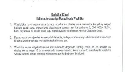 Maxkamadda saaka ayaan u ogollaan maxbuuska in loo qabto qareen, waxase arrinta la isweydiinayo ee su’aasha dhalisay ay tahay in maxkamaddu ay xukunkaas ay ku sababaysay caasi-waalidnimadu uu baalmarsanyahay qodobka 33-aad ee dastuurka Somaliland, kaasi oo u dhigan sidan.