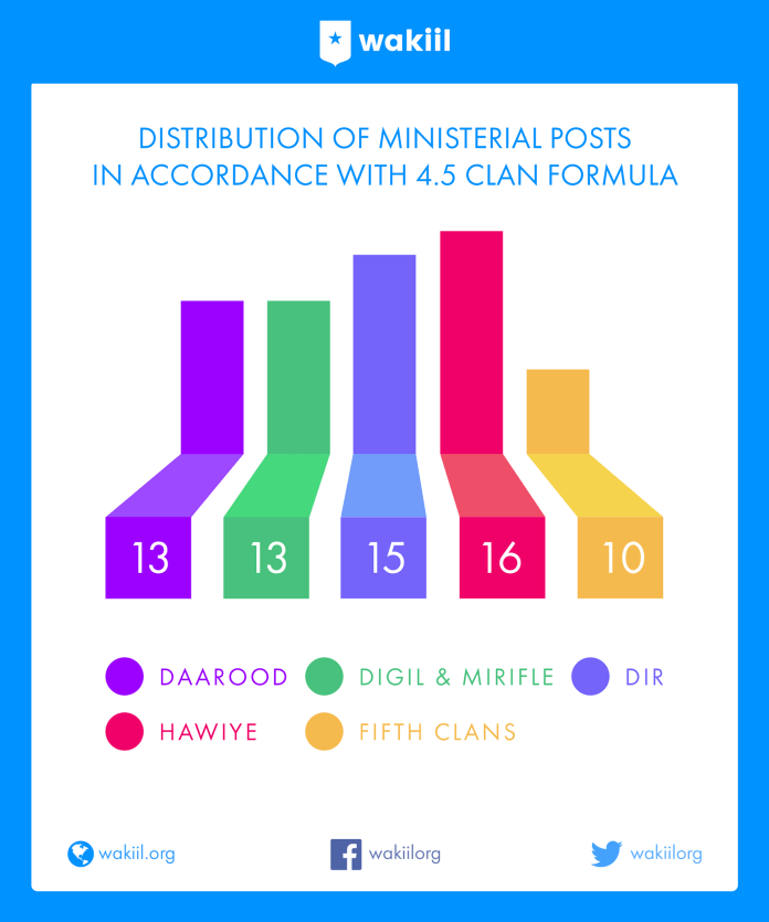 Sidoo kale wareegaha Wakiil wuxuu soo gudbiyey Awood-Qaybsiga nidaamka 4.5ka iyo siday beeluhu u qaybsadeen 67da wasiir ee xukuumadan hada jirta ka fiiri hoos
