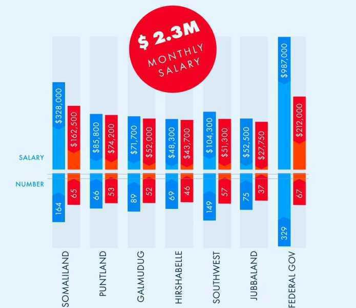 Tirada intaas la eg ayaa bil kasta mushaar ahaan u qaata lacag dhan 2.3 Milyan, halka sanadkii ay ku baxdo lacag dhan 27 Milyan oo Doolar.