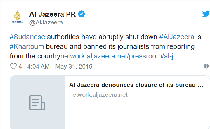 Dowladda Sudaan ayaa maanta gabi ahaanba Ruqsadi shaqo kala noqotay Tv-ga laga leeyahay dalka qadar ee Aljazeera sida ay shegeen Masuuliyinta Tv-ga.