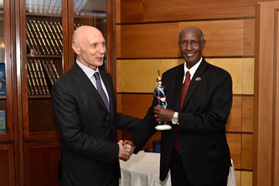 Taliyaha Ciidanka xooga Dalka S/gaas Daahir Aadan Cilmi (Indhaqarshe) iyo wafdi uu hogaaminayo oo ku sugan Magaalada Roma ee dalka Talyaaniga ayaa kulamo laqaatay mas’uuliyiinta ugu sareysa Ciidammada Dalka Talyaaniga.
