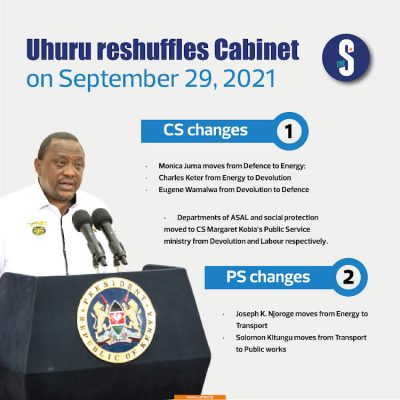 Isku shaandheyntan ayaa wasiirka gaashaandhigga Kenya waxaa laga dhigey Eugene Wamalwa halka Monica Juma laga dhigey wasiirka Tamarta.