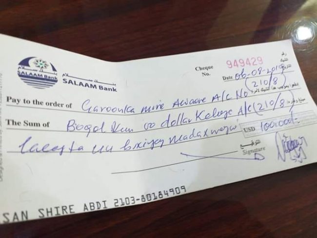 Guddiga dhimaha garoonka ayaa soo dhaweeyay lacagtaasi lagu wareejiyay iyagoona uga mahadceliyay dadkii soo dhiibay.