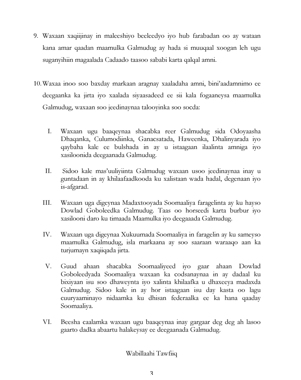 Waxaa ay sheegeen masuuliyiinta kalle ee kasoo horjeeda madaxwaynaha Galmudug inay ku adkaysteen in loo hogaansamo go’aankii baarlamaanka ee xilka uu kaga qaaday Xaaf.