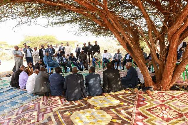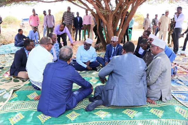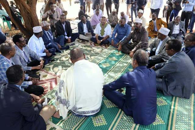 Madaxweynaha Jubbaland Axmed Madoobe ayaa maanta duleedka Kismaayo waxaa uu martiqaad ugu sameeyay wafuudii ka qeyb gashay caleema saarkiisa.