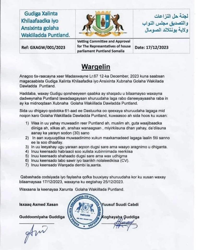 Wargalin kasoo baxday Guddiga Xalinta Khilaafaadka iyo qabashada codsiyada oo maanta bilaabatay.